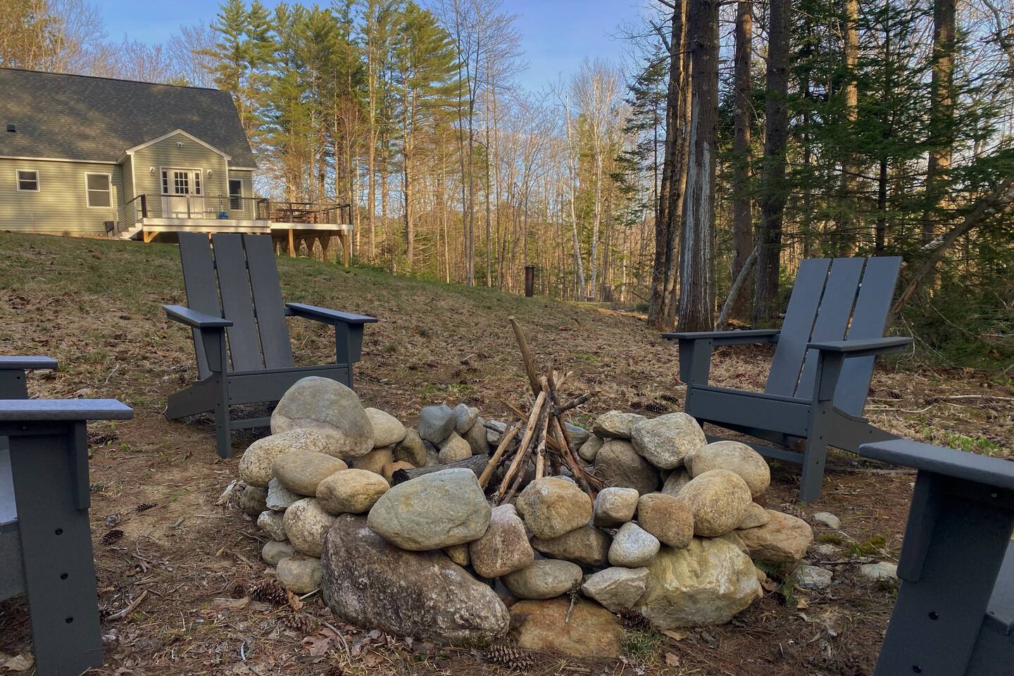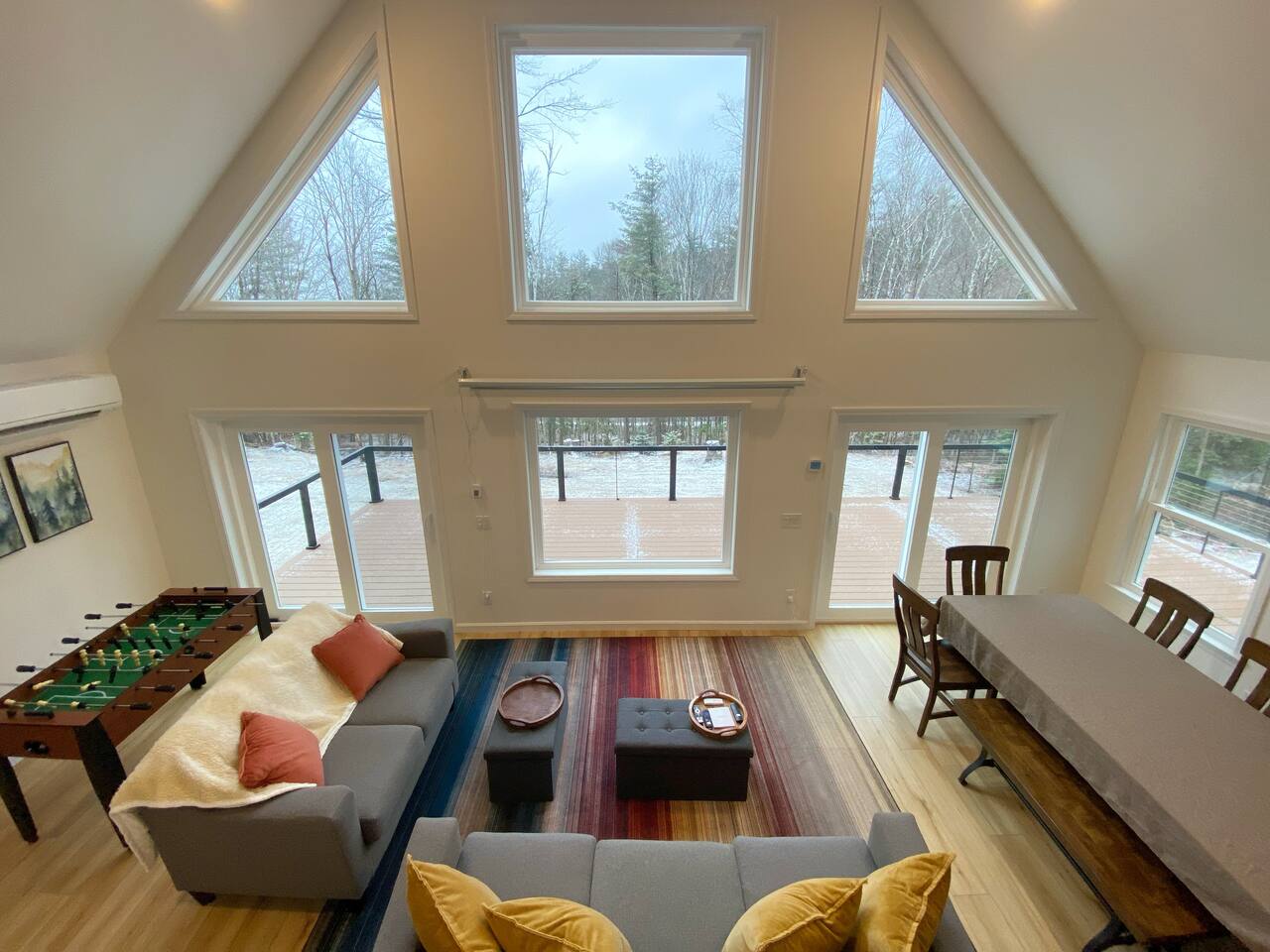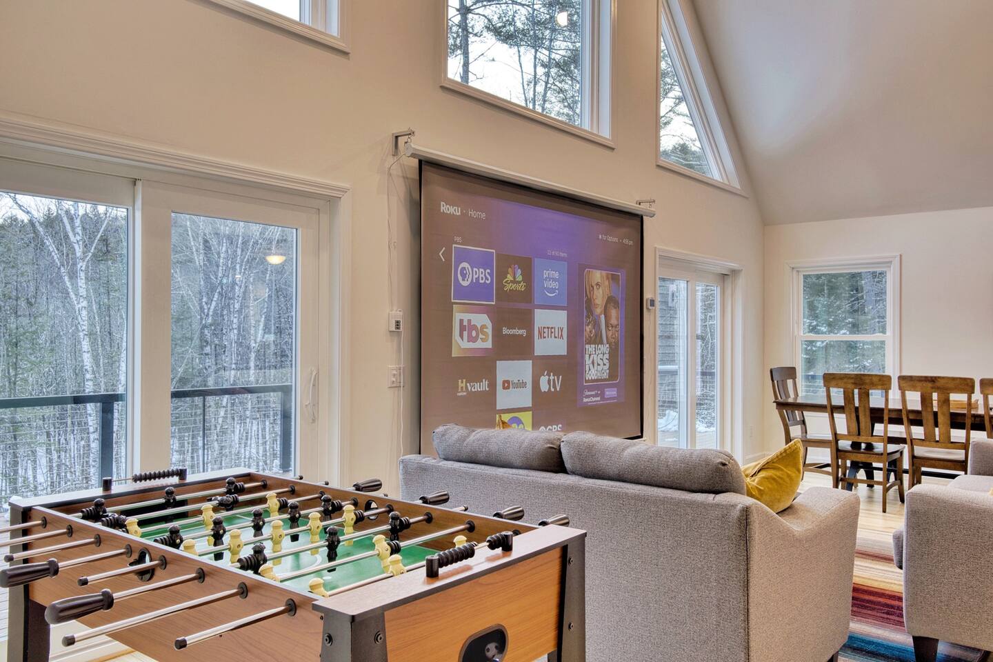 Pebbles and Peaks Retreat A Modern Family Getaway Near Waterville Valley Ski Resort Adventure Awaits! Make unforgettable memories with family and friends at this spacious, brand-new home—perfectly designed for relaxation, entertainment, and outdoor adventure. Located in a private setting just 13 minutes from Waterville Valley Resort, this retreat is ideal for skiers, hikers, and nature lovers alike. ⭐️ Plenty of Space for Everyone: With 4 bedrooms, 3 bathrooms, and an open-concept layout, there’s room for the whole family to spread out and unwind. Bedroom 1: King Bed Bedroom 2: Bunk Beds (3 twin beds + spare twin mattress) Bedroom 3: Queen Bed Bedroom 4: Queen Bed + King Pullout Couch (with a 2” mattress pad) ⭐️ Entertainment for All Ages: Movie nights on a 120” projector screen with streaming services Bunk room play area with games and play cushions for the kids Foosball table Additional TV upstairs for multiple viewing options ⭐️ Fully Equipped Kitchen: Modern appliances + ample counter space Coffee and tea station All the cooking necessities Built-in filtered water pitcher in the refrigerator ⭐️ Work & Stay Connected: Three private workstations for remote work WiFi booster to ensure seamless connectivity ⭐️ Outdoor Fun & Adventure: Explore nearby trails – Tripoli Road (13 minutes) & Welch-Dickey Trailhead (a short walk away!) Spacious yard for outdoor play & relaxation Large deck with dining set (available in summer) Oversized mudroom to store all your gear after a day on the slopes or trails ⭐️ Luxury Comforts: Radiant-heated bathroom floors for extra coziness King-sized primary bedroom for a restful night’s sleep Whether you’re skiing, hiking, or simply enjoying the fresh mountain air, Pebbles and Peaks Retreat offers the perfect blend of modern comfort and outdoor adventure. Book your stay today!