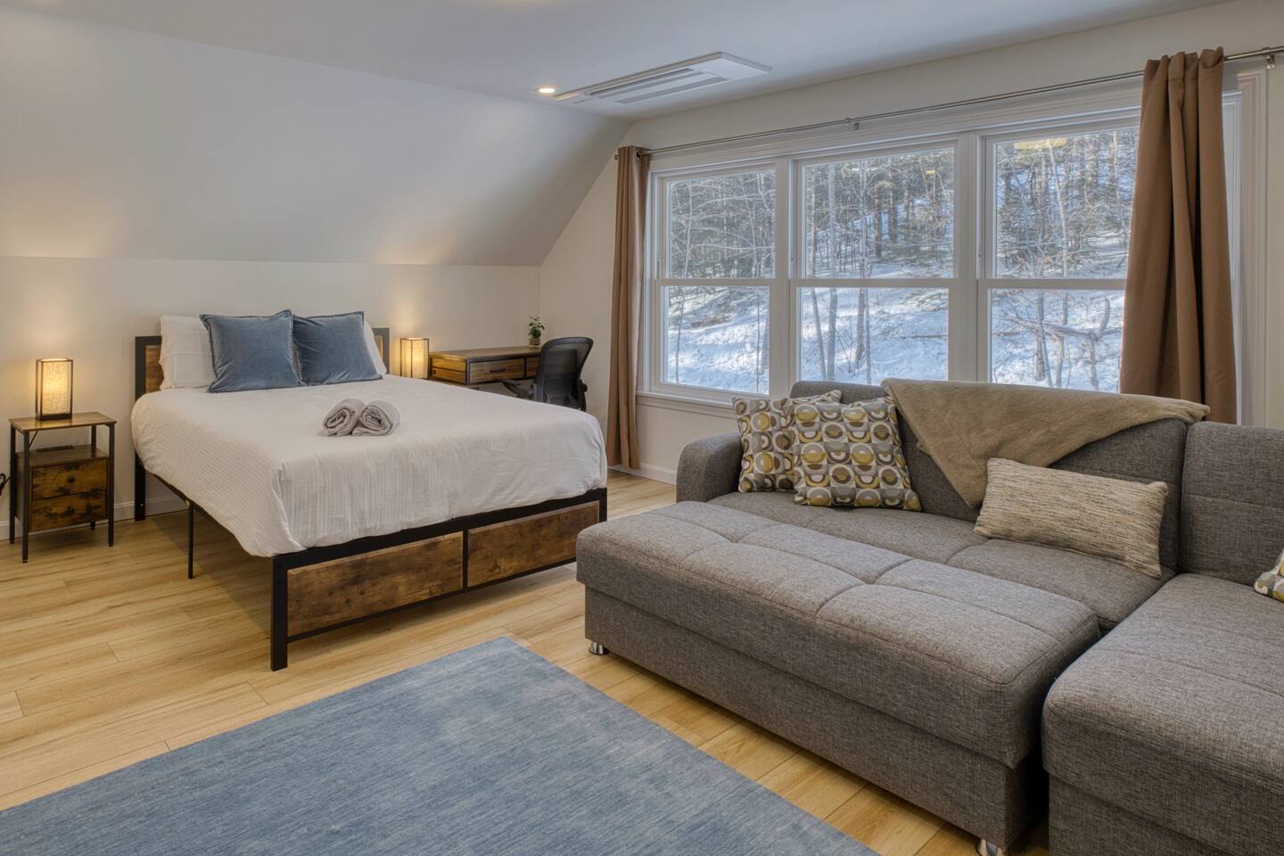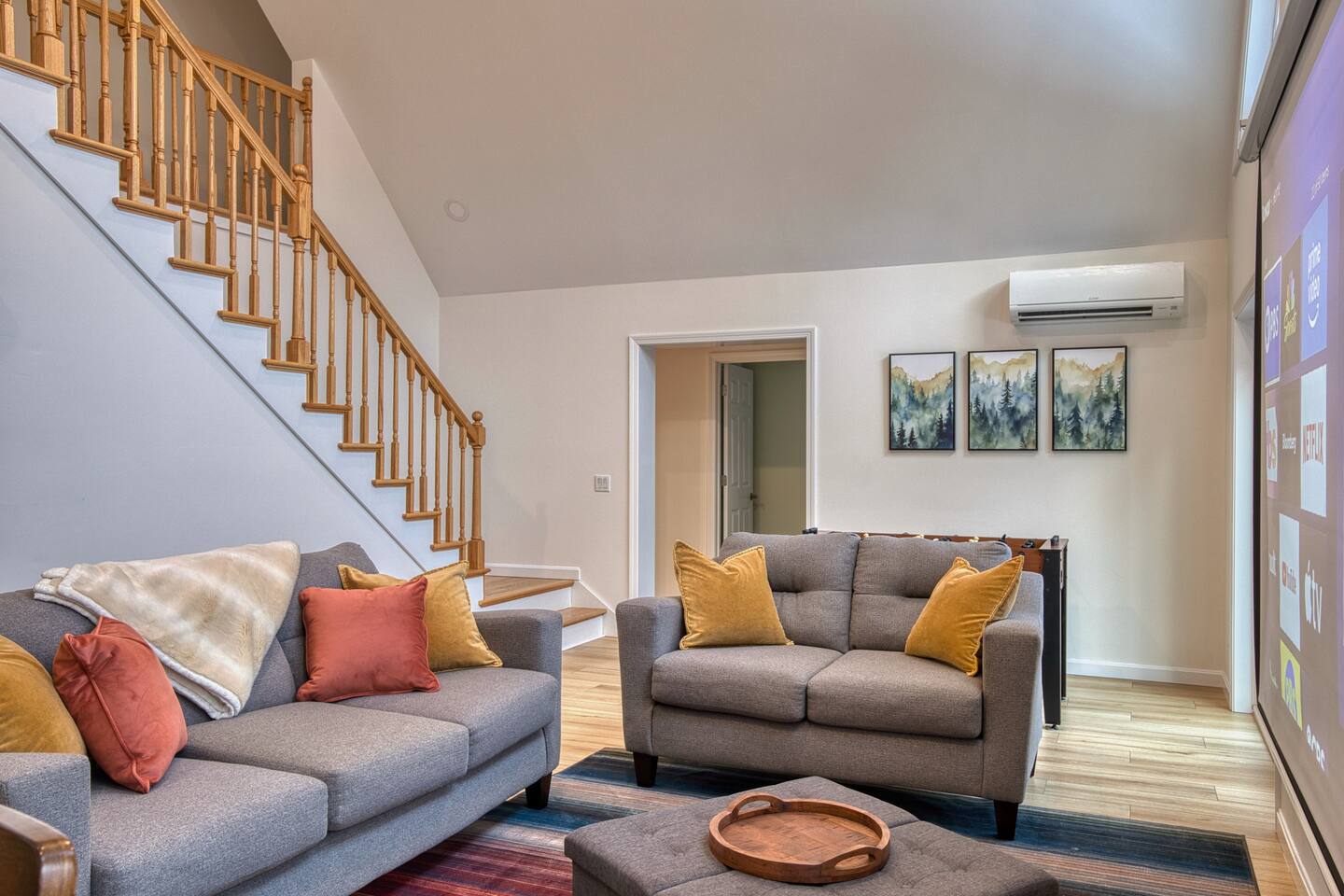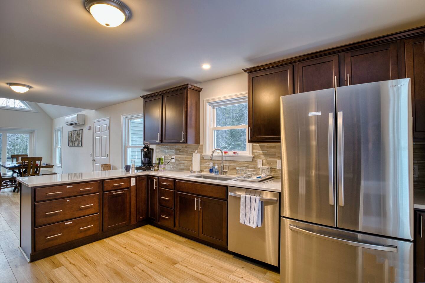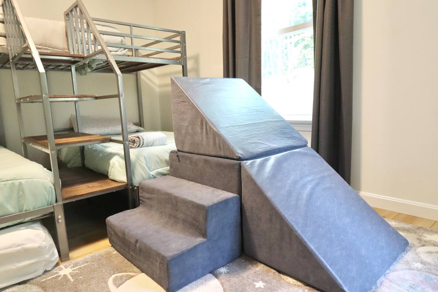 Pebbles and Peaks Retreat A Modern Family Getaway Near Waterville Valley Ski Resort Adventure Awaits! Make unforgettable memories with family and friends at this spacious, brand-new home—perfectly designed for relaxation, entertainment, and outdoor adventure. Located in a private setting just 13 minutes from Waterville Valley Resort, this retreat is ideal for skiers, hikers, and nature lovers alike. ⭐️ Plenty of Space for Everyone: With 4 bedrooms, 3 bathrooms, and an open-concept layout, there’s room for the whole family to spread out and unwind. Bedroom 1: King Bed Bedroom 2: Bunk Beds (3 twin beds + spare twin mattress) Bedroom 3: Queen Bed Bedroom 4: Queen Bed + King Pullout Couch (with a 2” mattress pad) ⭐️ Entertainment for All Ages: Movie nights on a 120” projector screen with streaming services Bunk room play area with games and play cushions for the kids Foosball table Additional TV upstairs for multiple viewing options ⭐️ Fully Equipped Kitchen: Modern appliances + ample counter space Coffee and tea station All the cooking necessities Built-in filtered water pitcher in the refrigerator ⭐️ Work & Stay Connected: Three private workstations for remote work WiFi booster to ensure seamless connectivity ⭐️ Outdoor Fun & Adventure: Explore nearby trails – Tripoli Road (13 minutes) & Welch-Dickey Trailhead (a short walk away!) Spacious yard for outdoor play & relaxation Large deck with dining set (available in summer) Oversized mudroom to store all your gear after a day on the slopes or trails ⭐️ Luxury Comforts: Radiant-heated bathroom floors for extra coziness King-sized primary bedroom for a restful night’s sleep Whether you’re skiing, hiking, or simply enjoying the fresh mountain air, Pebbles and Peaks Retreat offers the perfect blend of modern comfort and outdoor adventure. Book your stay today!