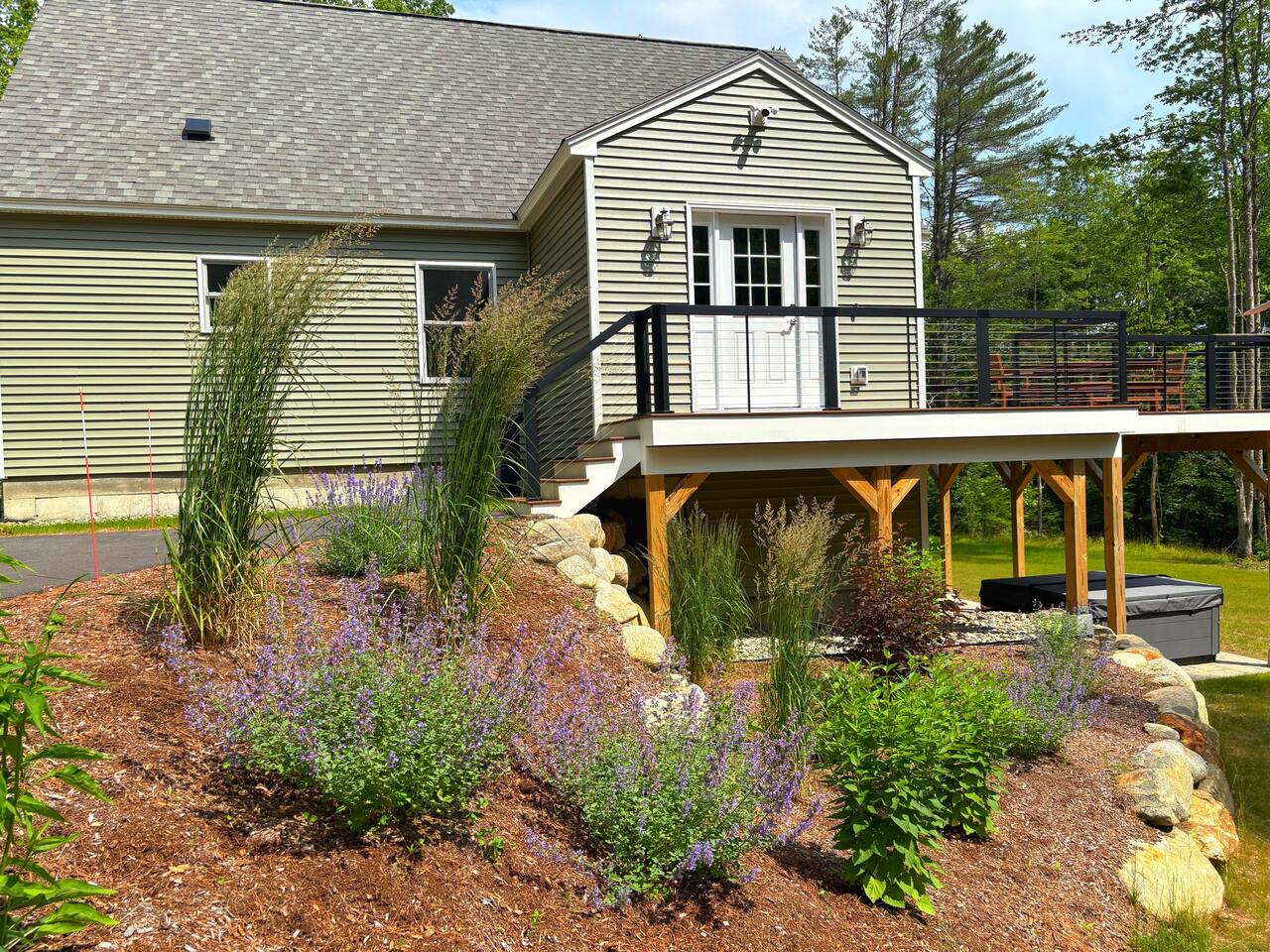 ☀️ Large deck & grassy yard - outdoor dining, fire pit, hot tub 🎬 120" TV projector with streaming 👑 King bed in primary bedroom 👫 Bunkroom with toys and play cushions ⛳️ 14 minutes to Owls Nest 🏔️ 12 minutes to Waterville Valley and Tripoli Rd hiking trails 💼 3 workstations in privacy of bedrooms 🔥 Radiant-heated bathroom floors 🎿 Oversized mudroom to store your outdoor gear 🥾 Short walk to the Welch-Dicky trailhead 🧭 Digital guidebook w/house manual and local recommendations